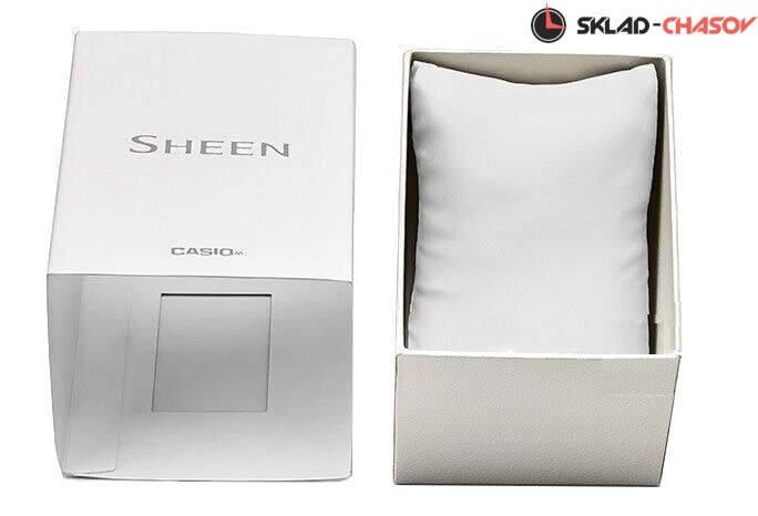 Sheen. Женские часы с круглым стальным корпусом. Циферблат защищен прочным сапфировым стеклом. Метки в виде штрихов и двух римских цифр. Батарея рассчитана на 3 года. Браслет с тройной раскладывающейся застежкой, расстегиваемой одним касанием.