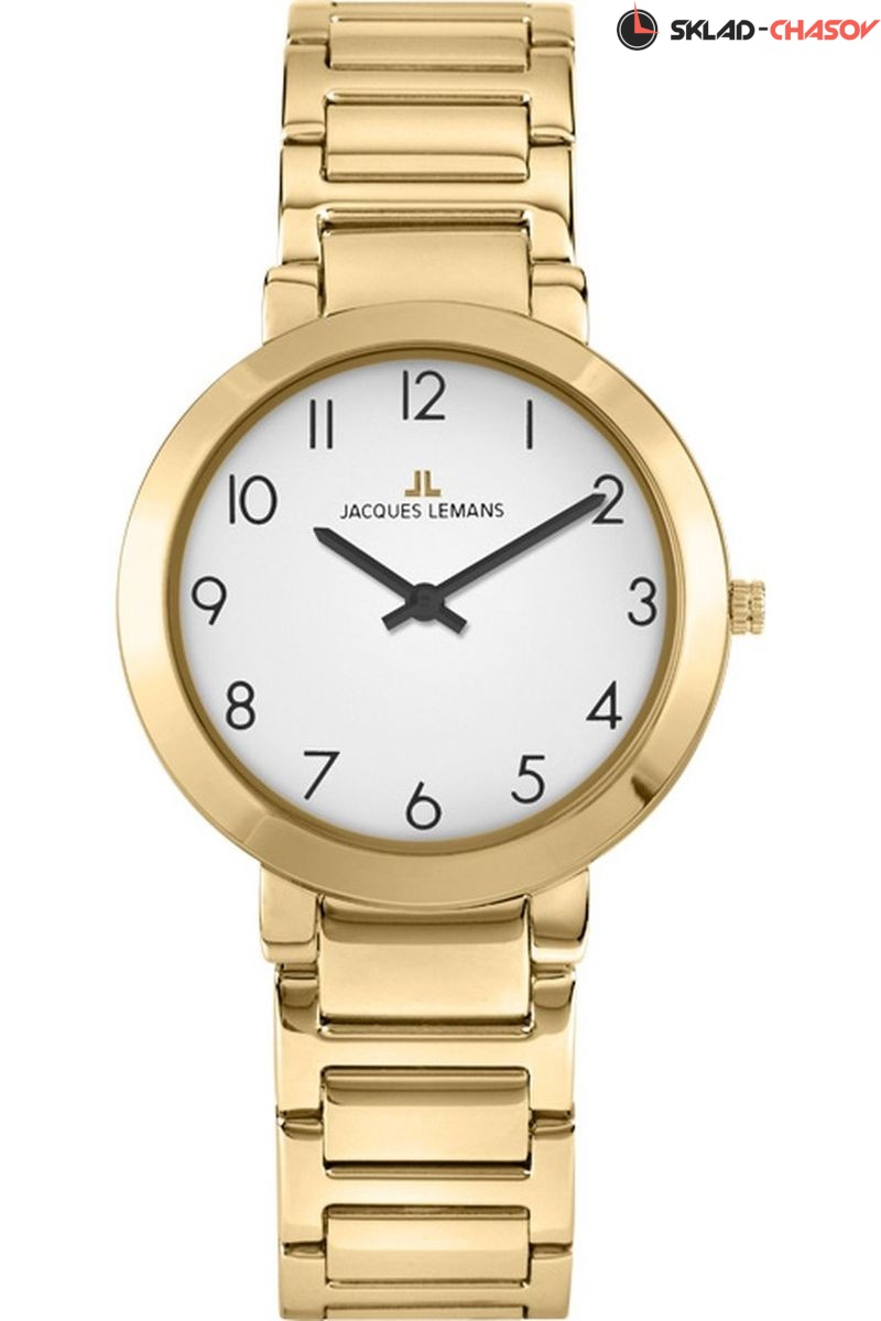 Женские часы из серии Milano от Jacques Lemans впечатляют элегантной простотой. Корпус из нержавеющей стали с диаметром 32 мм дополнен PVD-покрытием из желтого золота. На минималистичном циферблате белого цвета — хорошо читаемые арабские цифры. В кварцевой модели установлено ударопрочное минеральное стекло Crystex. Водостойкость равна 5 АТМ. Браслет из стальных звеньев с раскладывающейся застежкой прекрасно сочетается с общим дизайном модели. Эти стильные часы идеально подойдут для любого выбранного вами образа.