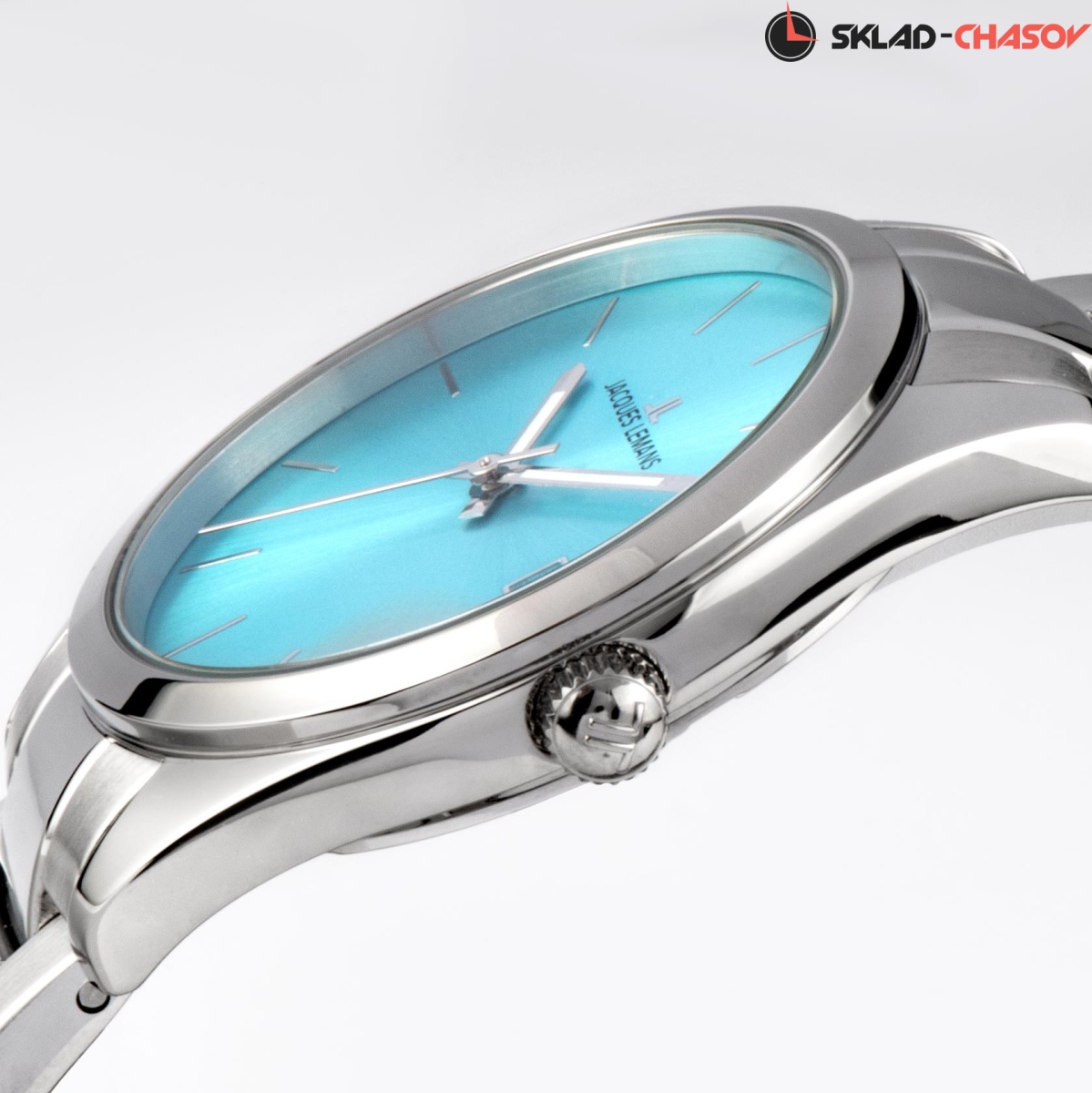 Классические часы серии Derby идеальны для современной жизни. Корпус модели диаметром 34 мм сделан из гипоаллергенной стали — этот материал удобен и безопасен для ежедневного использования. Четкий циферблат голубого цвета украшен полировкой в виде солнечных лучей. Время легко определить при любых условиях видимости: люминесцентное покрытие часовой и минутной стрелок светится в темноте. Окошко даты размещено в положении «3 часа». В модели установлено ударопрочное минеральное стекло Crystex. Повышенная водостойкость равна 10 атмосфер. Застежка-клипса с логотипом бренда надежно удерживает браслет часов на запястье.