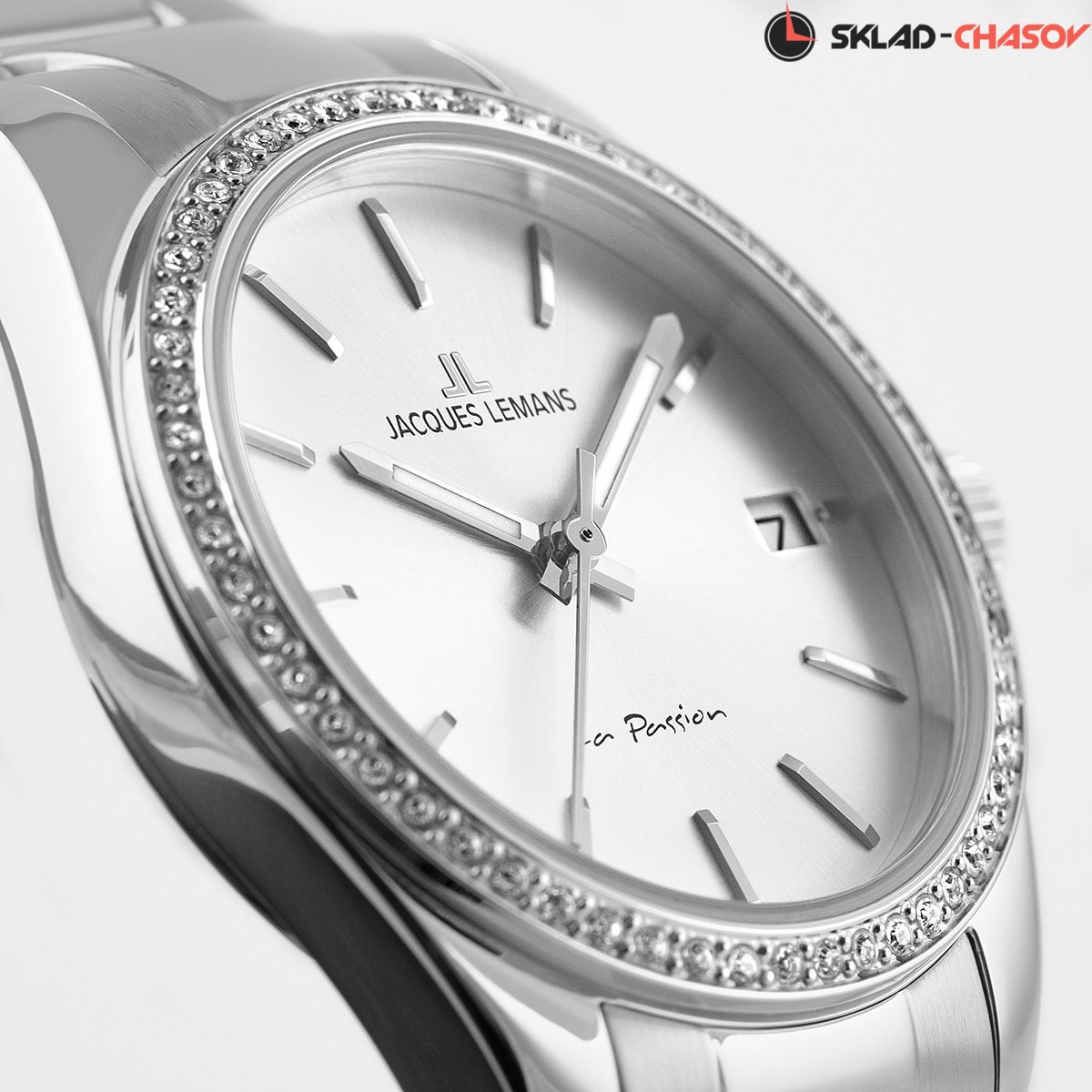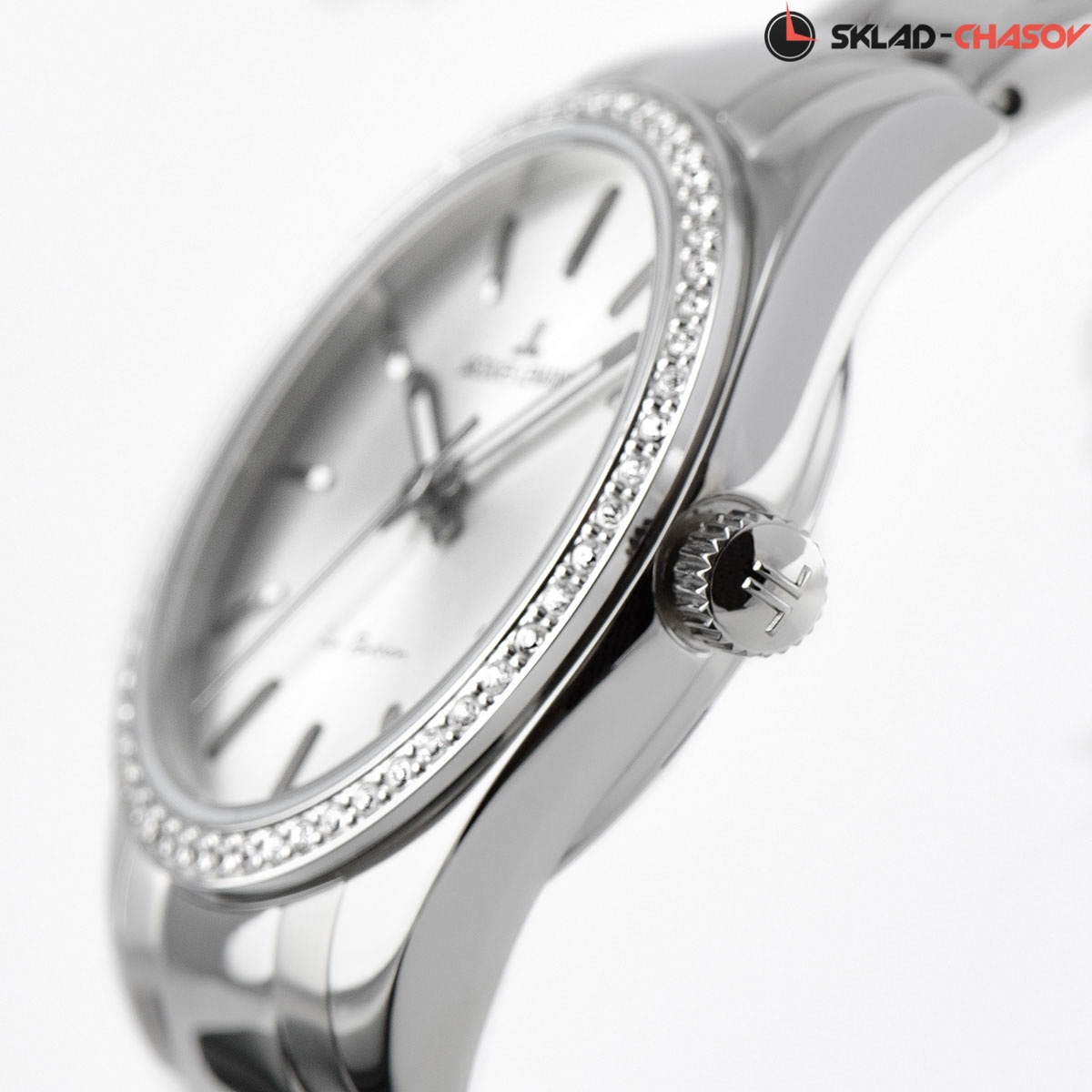 Кварцевая модель из коллекции La Passion очаровывает своей лаконичностью. Тонкий корпус из прочной нержавеющей стали имеет диаметр 30 мм. Он украшен сияющими кристаллами Swarovski. Стальной циферблат с полировкой в виде солнечных лучей вмещает хорошо читаемые риски и индикатор даты в позиции «3 часа». В модели установлено ударопрочное минеральное стекло Crystex. Повышенная водонепроницаемость равна 10 атмосфер. Браслет собран из литых стальных звеньев с надежной застежкой — клипсой, оснащенной дополнительной защитой от случайного расстегивания. Эти часы — идеальный аксессуар, который будет уместен практически в любой ситуации, для любого выхода.