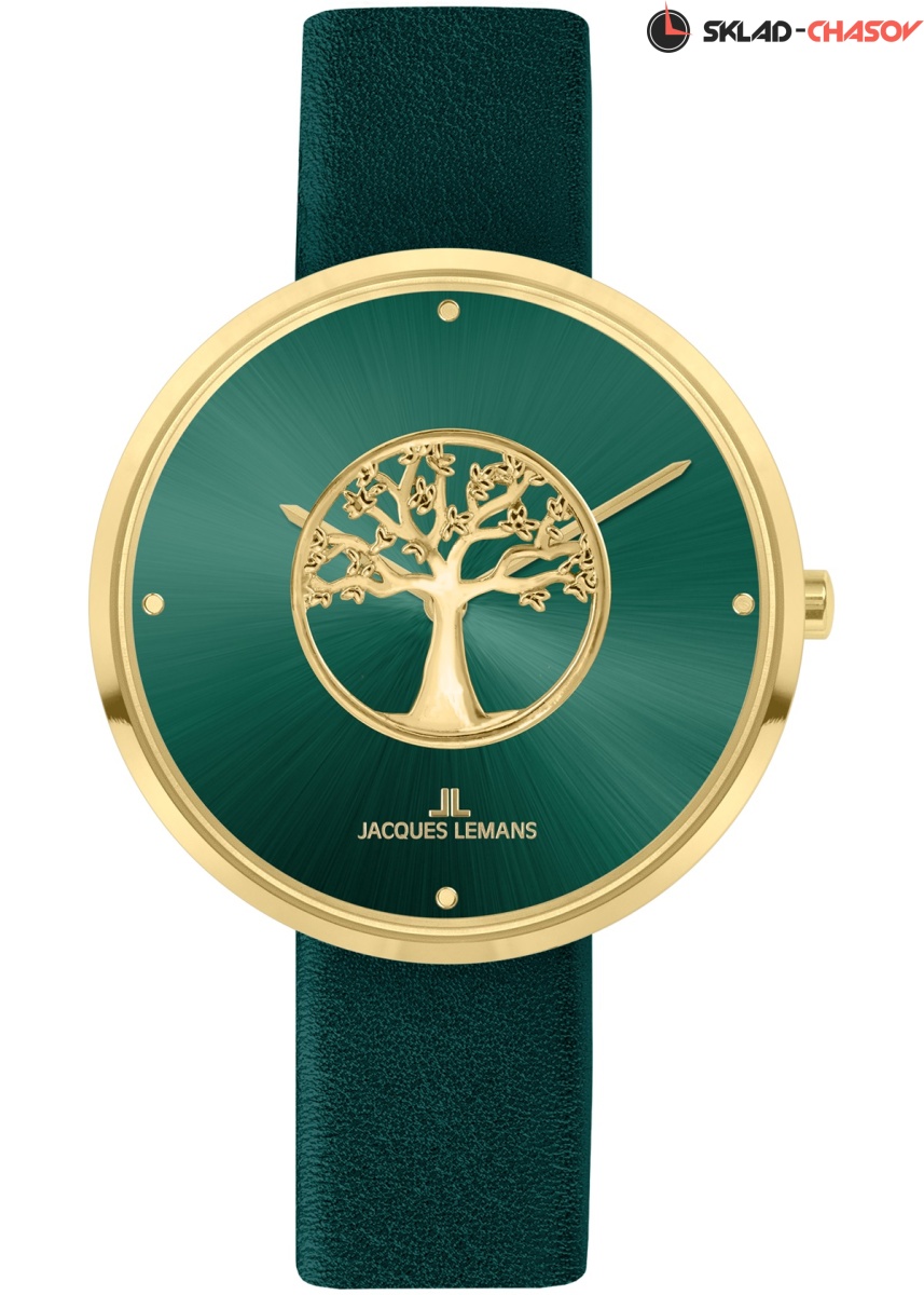 Главное украшение дизайнерских часов Jacques Lemans – объемный элемент в виде дерева. Он словно парит в воздухе над темно-зеленым циферблатом: такой эффект создают два ударопрочных минеральных стекла Crystex, установленных в модели. Минималистичный корпус сделан из нержавеющей стали, его диаметр равен 36 мм. Стальной браслет миланского плетения эффектно оттеняет полировку в виде солнечных лучей на циферблате. Эти часы — не просто украшение, а способ создать свой неповторимый стиль.