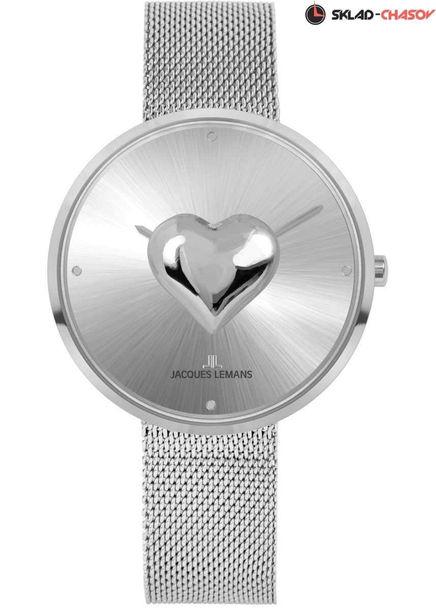 Главное украшение дизайнерских часов Jacques Lemans – объемный элемент в виде сердца. Он словно парит в воздухе над серебристым циферблатом: такой эффект создают два ударопрочных минеральных стекла Crystex, установленных в модели. Минималистичный корпус сделан из нержавеющей стали, его диаметр равен 36 мм. Стальной браслет миланского плетения эффектно оттеняет полировку в виде солнечных лучей на циферблате. Эти часы — не просто украшение, а способ создать свой неповторимый стиль.