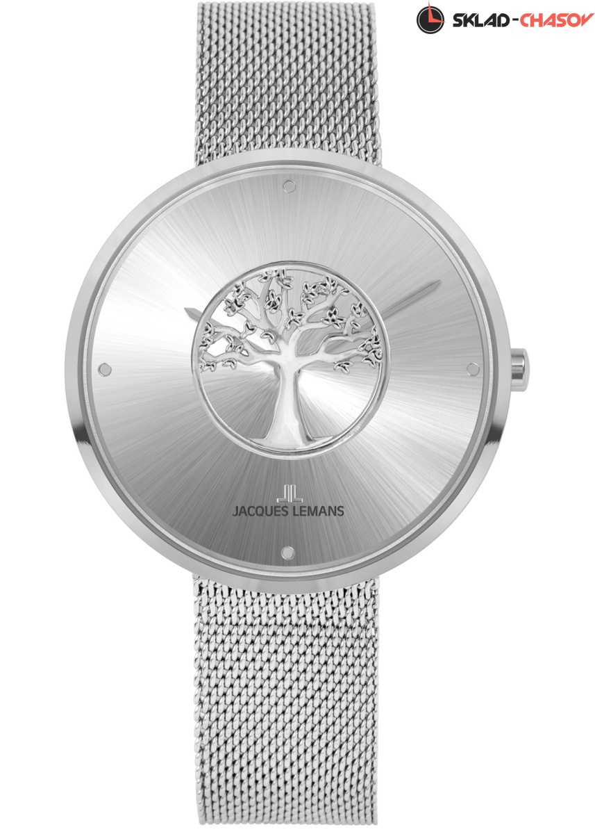 Главное украшение дизайнерских часов Jacques Lemans – объемный элемент в виде дерева. Он словно парит в воздухе над серебристым циферблатом: такой эффект создают два ударопрочных минеральных стекла Crystex, установленных в модели. Минималистичный корпус сделан из нержавеющей стали, его диаметр равен 36 мм. Стальной браслет миланского плетения эффектно оттеняет полировку в виде солнечных лучей на циферблате. Эти часы — не просто украшение, а способ создать свой неповторимый стиль.