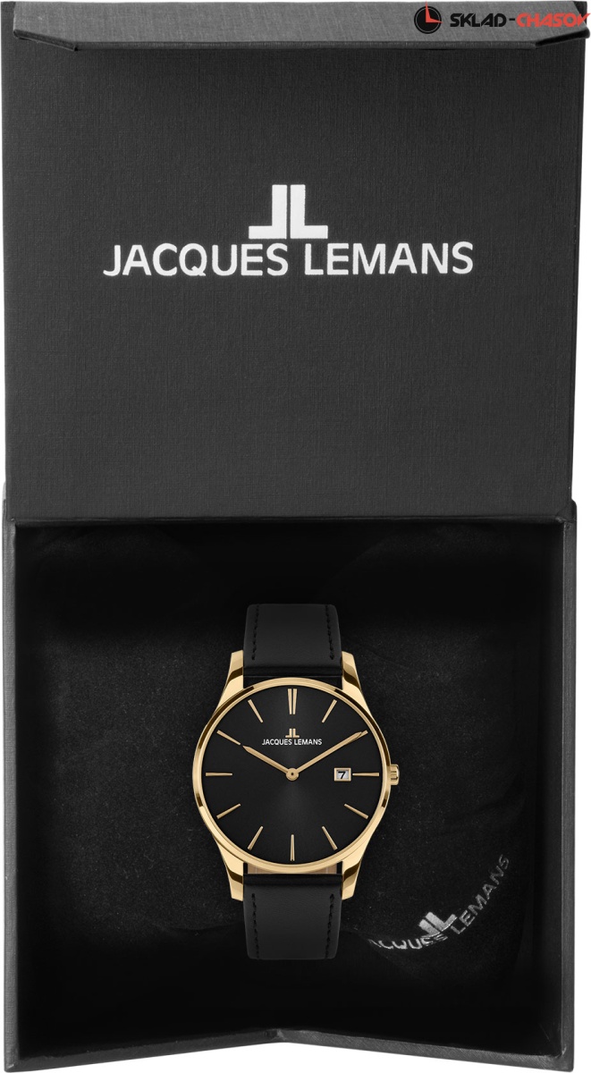 Кварцевые часы Jacques Lemans удобны и функциональны. Их корпус из нержавеющей стали имеет диаметр 38 мм: он хорошо будет смотреться на любом запястье. На циферблате легко читаются стрелки, индексы и контрастное окошко даты. В модели установлено ударопрочное минеральное стекло Crystex. Ремешок сделан из мягкой натуральной кожи с прошивкой, которая продлевает его срок службы. Черный цвет циферблата и ремешка эффектно сочетается с PVD-покрытием из желтого золота, дополняющим корпус модели.