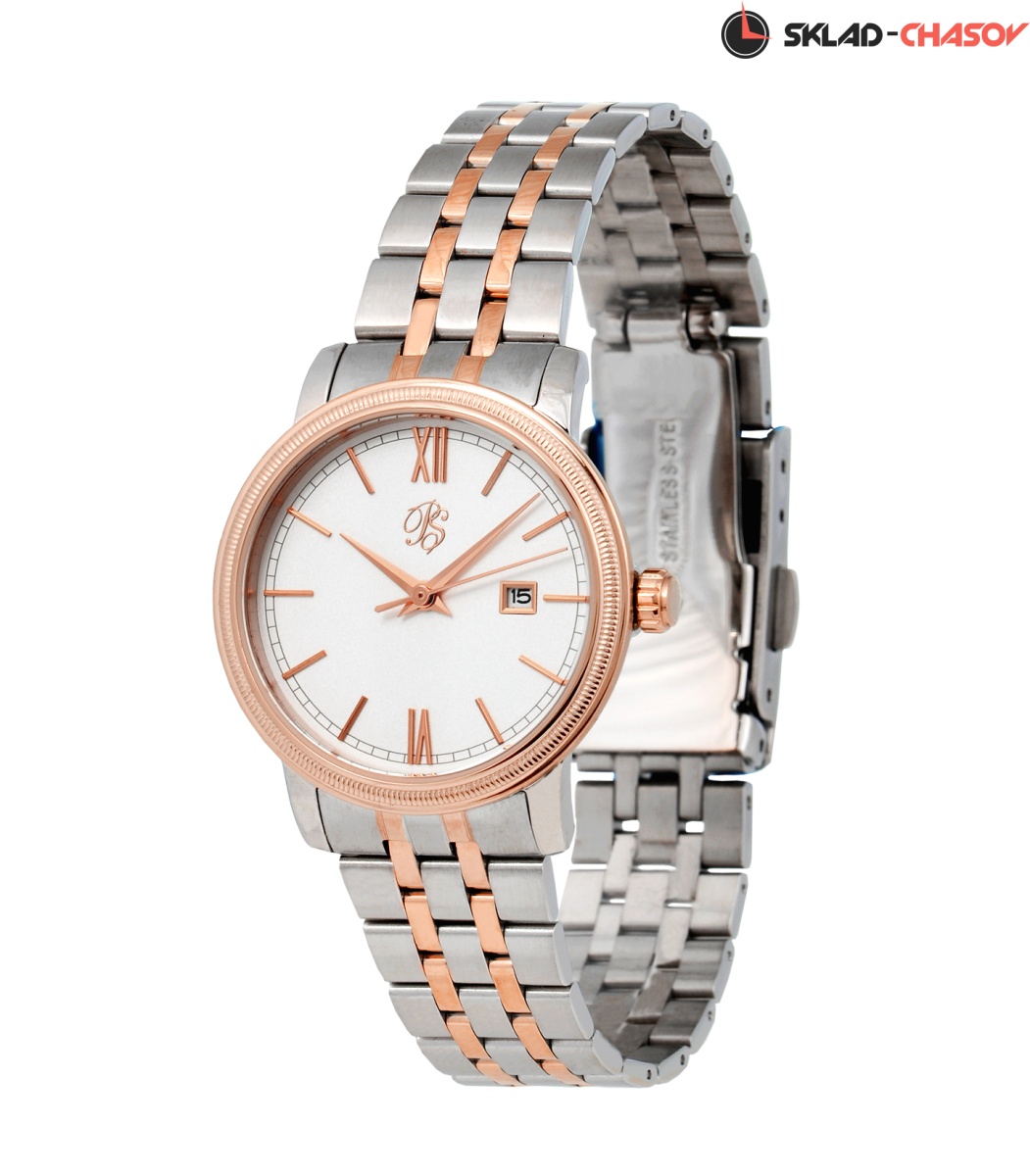 Женские часы этой модели выпускается в двух вариантах: элементы корпуса и браслета с желтой позолотой и элементы корпуса и браслета с розовой позолотой и имеет парную мужскую модель.