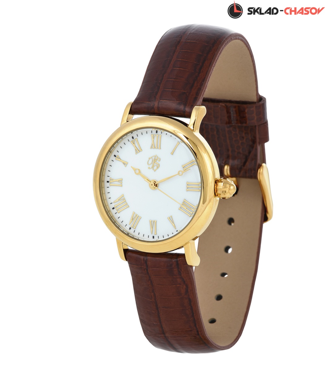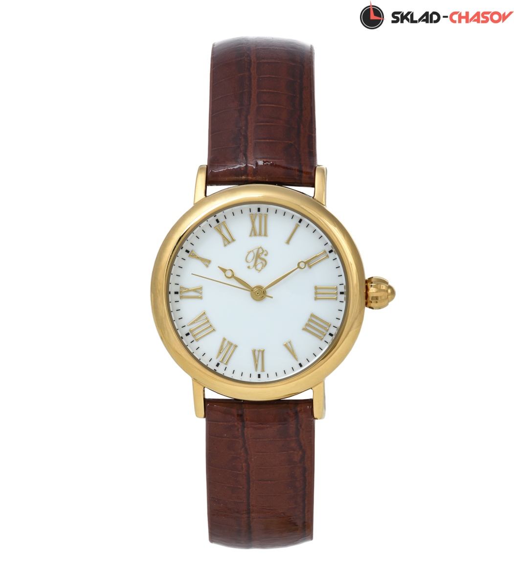 Циферблат – белая эмаль с позолоченными накладными знаками.