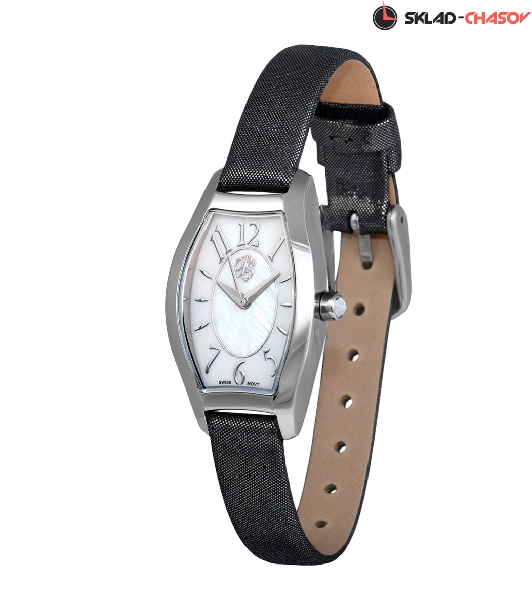Изящные стрелочки приводит в движение надежный швейцарский механизм. Циферблат из натурального перламутра.