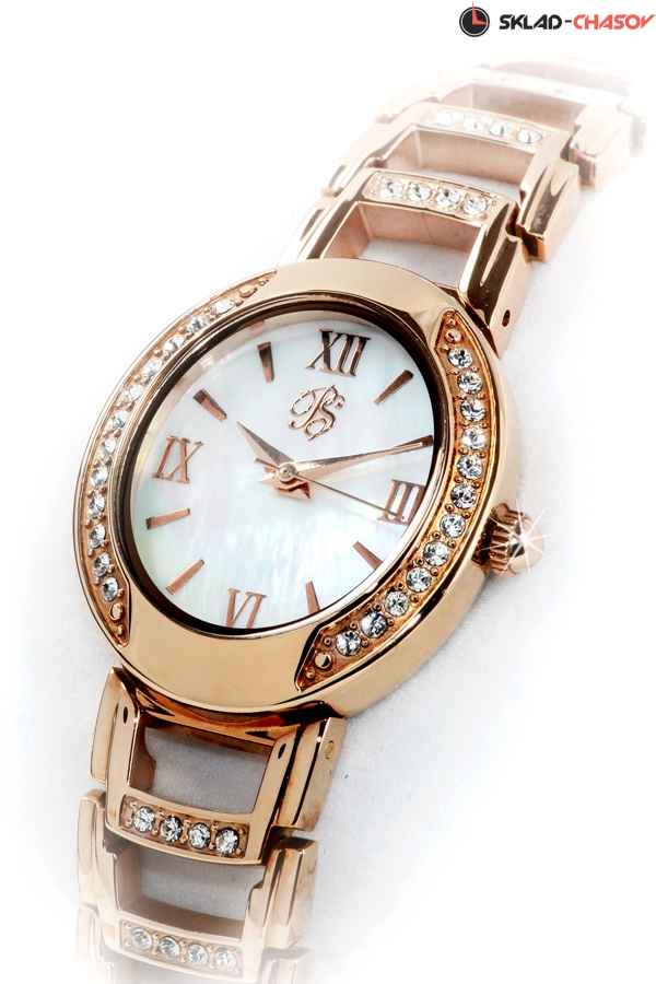 Изысканность часам придает циферблат, выполненный из натурального перламутра. Надежный швейцарский механизм обеспечивает точность часов.