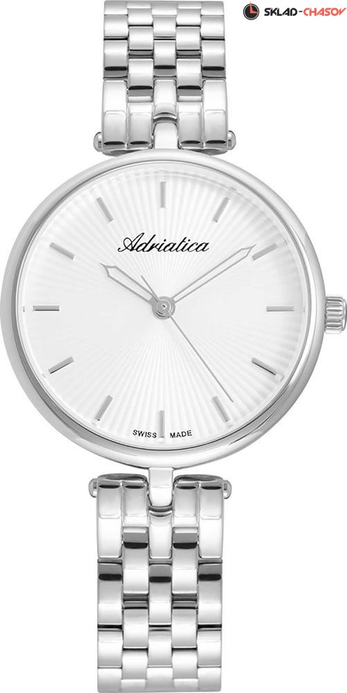 Изящные женские наручные часы Adriatica на стальном браслете. Сердцем часов, обеспечивающем точность хода, является швейцарский кварцевый механизм Ronda 763. Вес всего 65 грамм.Гарантия 2 года.
