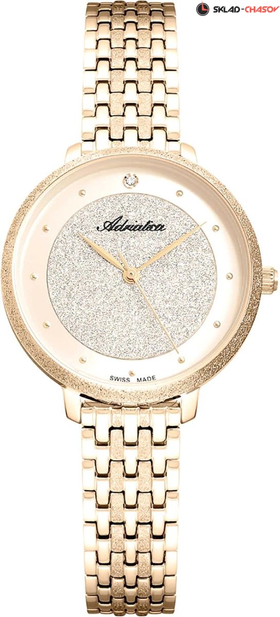 Стильные женские наручные часы в круглом корпусе. Циферблат украшен цирконом. Точность хода обеспечивает швейцарский кварцевый механизм. Браслет с раскладывающейся застежкой. Гарантия 2 года.