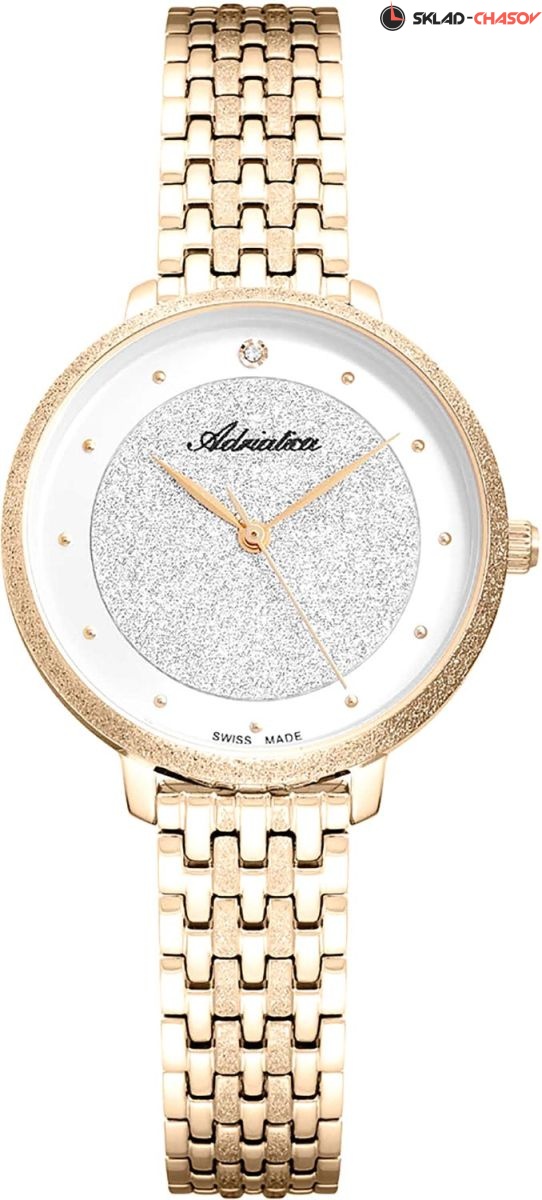 Стильные женские наручные часы в круглом корпусе. Циферблат украшен цирконом. Точность хода обеспечивает швейцарский кварцевый механизм. Браслет с раскладывающейся застежкой. Гарантия 2 года.