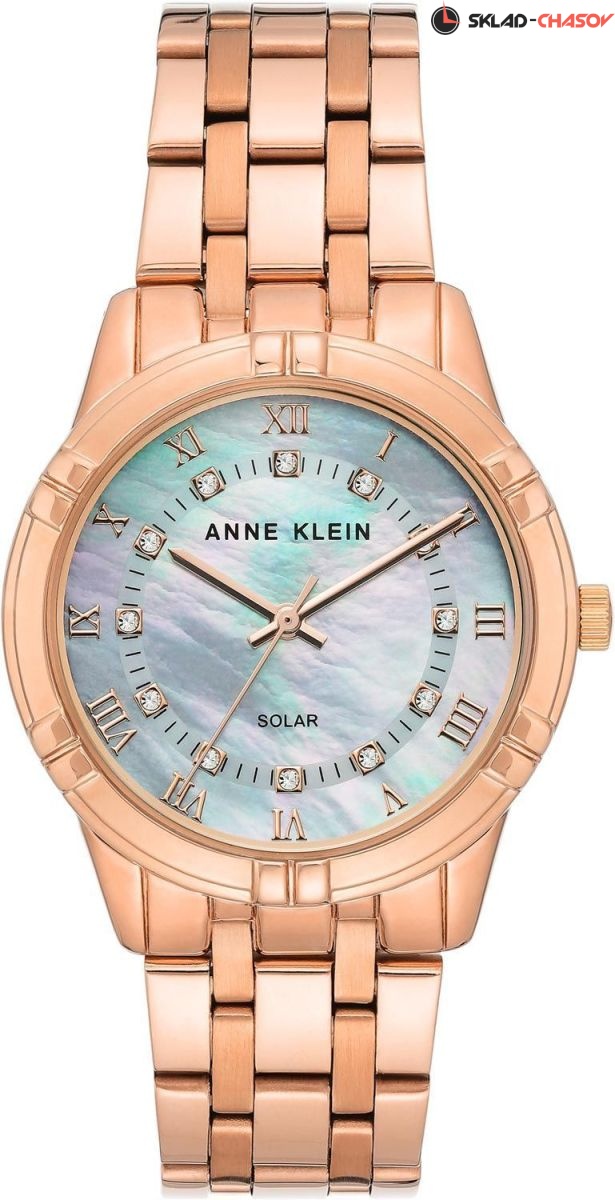 Женские наручные часы с питанием от энергии солнечного света. Циферблат украшен кристаллами. Браслет с раскладывающейся застежкой. Гарантия 2 года.