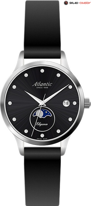 Элегантные наручные часы с отображением фазы луны. Циферблат украшен кристаллами и закрыт устойчивым к потертостям и царапинам сапфировым стеклом. Присутствует апертура даты. Ремешок с классической застежкой. Гарантия 2 года.