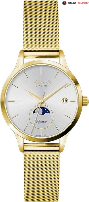 Элегантные наручные часы с отображением фазы луны. Циферблат закрыт устойчивым к потертостям и царапинам сапфировым стеклом. Присутствует апертура даты. Ремешок с классической застежкой. Гарантия 2 года.