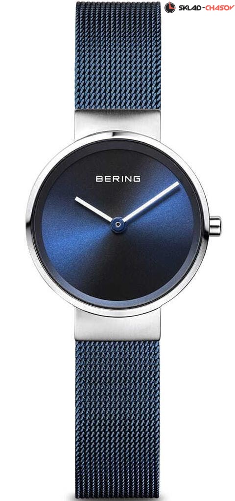 Корпус из полированной нержавеющей стали серебристого цвета, изготовленный из чистой высококачественной медицинской нержавеющей стали (316L), в сочетании с современным миланским ремешком синего цвета придает часам классический вид BERING. Тонкая работа миланского ремешка придает часам утонченный, почти благородный вид. Минималистичный циферблат Sunray, гармонирующий с ремешком и защищенный кристально чистым, устойчивым к царапинам сапфировым стеклом, идеально дополняет современный образ.