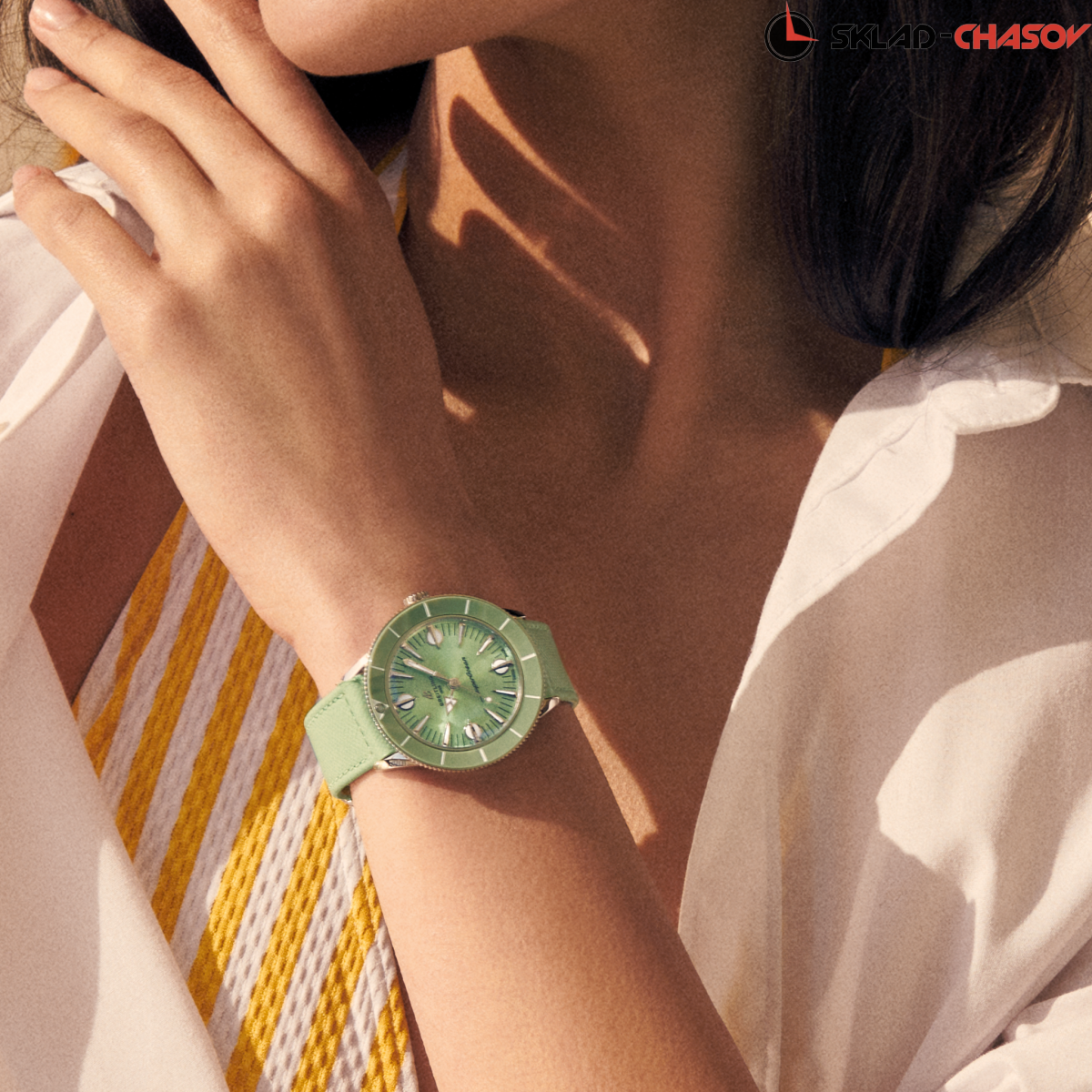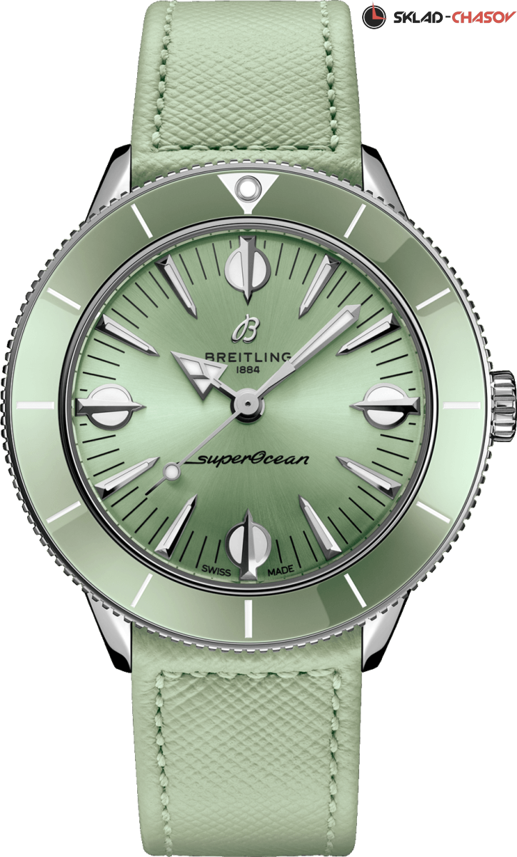 Модель посвящена оригинальным часам из коллекции SuperOcean 1957 года и воплощение пляжного стиля. Стильные и непринужденные, напоминающие серфингистов 60-х годов. Вогнутый двунаправленный керамический безель и циферблат с увеличенными индексами. Задняя крышка с гравировкой. COSC хронометр.