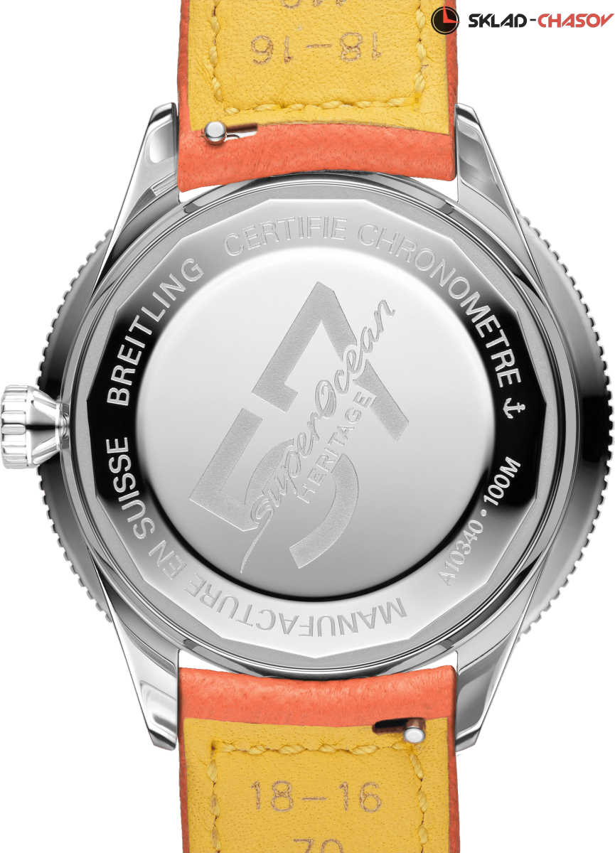 Модель посвящена оригинальным часам из коллекции SuperOcean 1957 года и воплощение пляжного стиля. Стильные и непринужденные, напоминающие серфингистов 60-х годов. Вогнутый двунаправленный керамический безель и циферблат с увеличенными индексами. Задняя крышка с гравировкой. COSC хронометр.