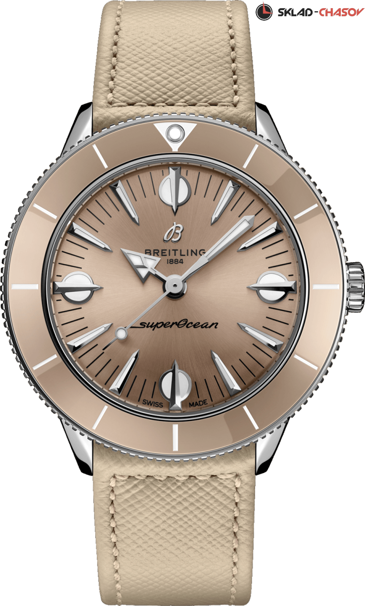 Модель посвящена оригинальным часам из коллекции SuperOcean 1957 года и воплощение пляжного стиля. Стильные и непринужденные, напоминающие серфингистов 60-х годов. Вогнутый двунаправленный керамический безель и циферблат с увеличенными индексами. Задняя крышка с гравировкой. COSC хронометр.