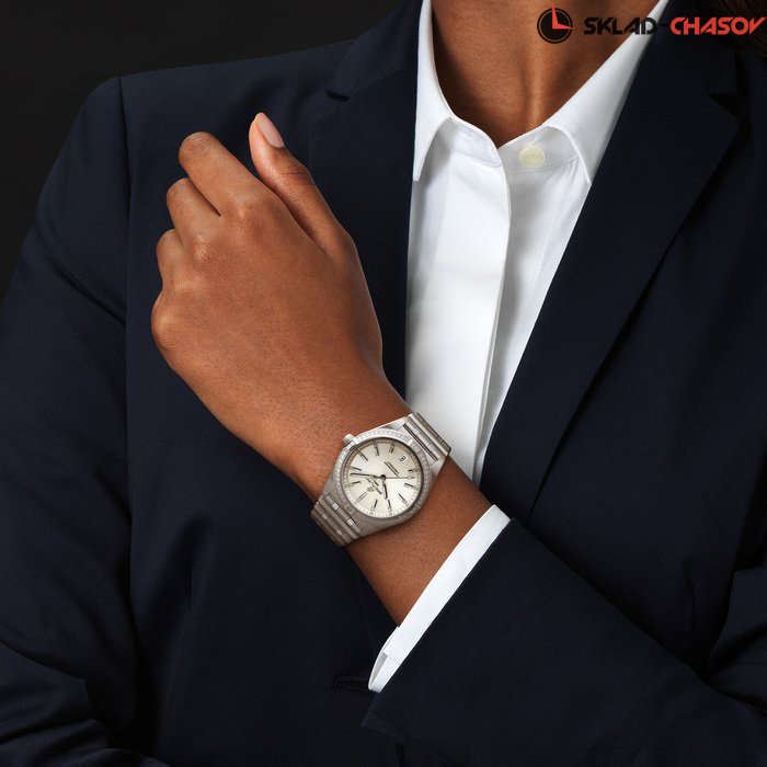 Выразительная и элегантная женская модель, механические с автоподзаводом, однонаправленный безель с культовыми вкладками. Секундная стрелка с логотипом на конце. Апертура даты в положении 6 часов. Хронометр C.O.S.C.