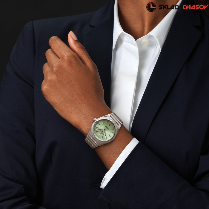 Выразительная и элегантная женская модель, механические с автоподзаводом, однонаправленный безель с культовыми вкладками. Секундная стрелка с логотипом на конце. Апертура даты в положении 6 часов. Хронометр C.O.S.C.
