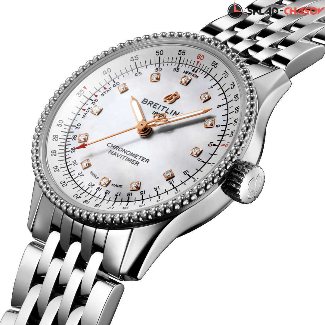 Изысканная и элегантная модель для современных женщин. Фирменный безель с бусинами двунаправленного вращения, логарифмическая шкала, расположение даты в районе 6 часов, хронометр C.O.S.C.