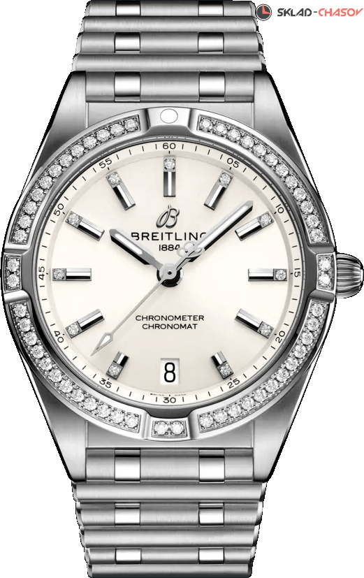 Выразительная и элегантная женская кварцевая модель. Секундная стрелка с логотипом на конце. Апертура даты в положении 6 часов. Хронометр C.O.S.C.