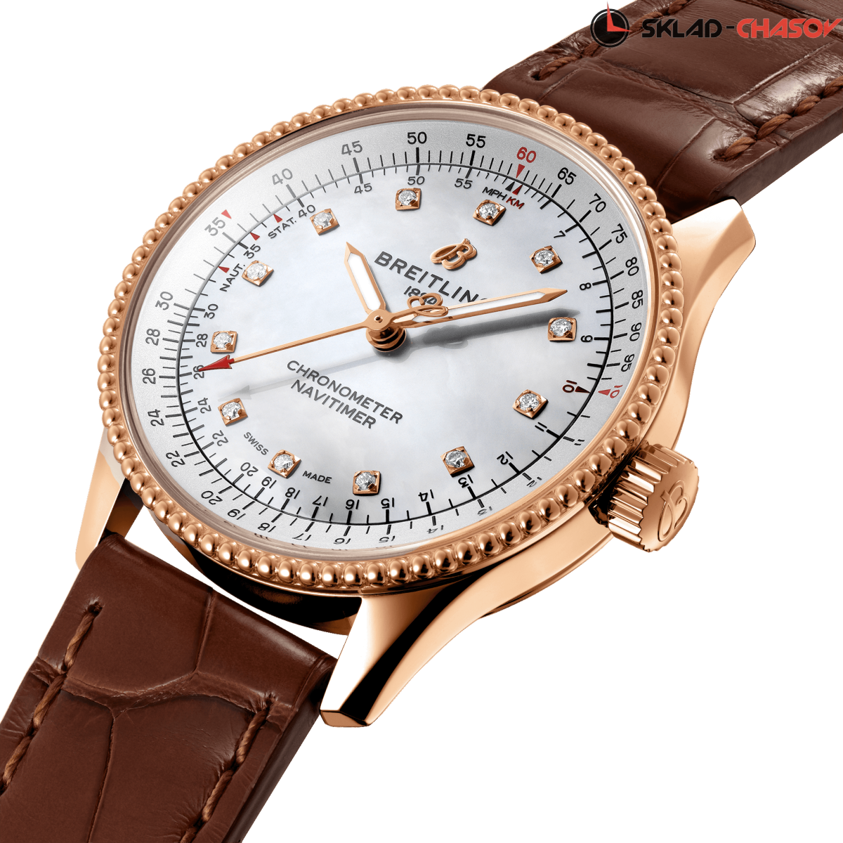 Изысканная и элегантная модель для современных женщин. Фирменный безель с бусинами двунаправленного вращения, логарифмическая шкала, хронометр C.O.S.C.