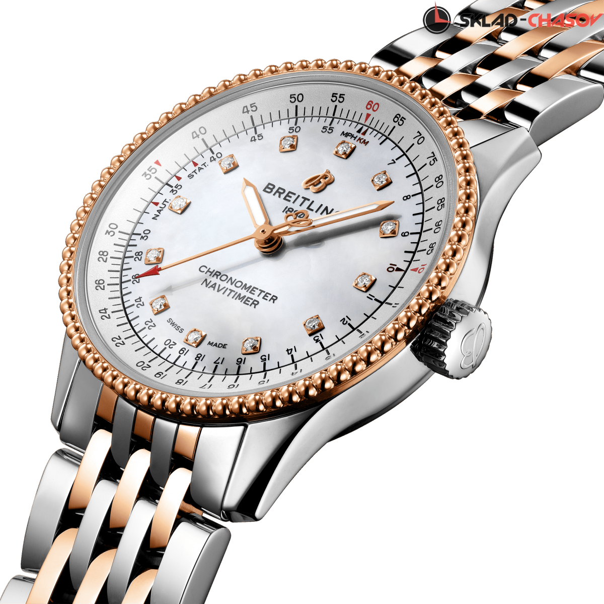 Изысканная и элегантная модель для современных женщин. Фирменный безель с бусинами двунаправленного вращения, логарифмическая шкала, хронометр C.O.S.C.