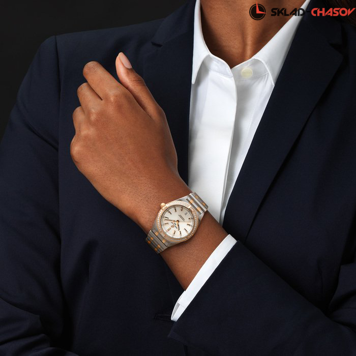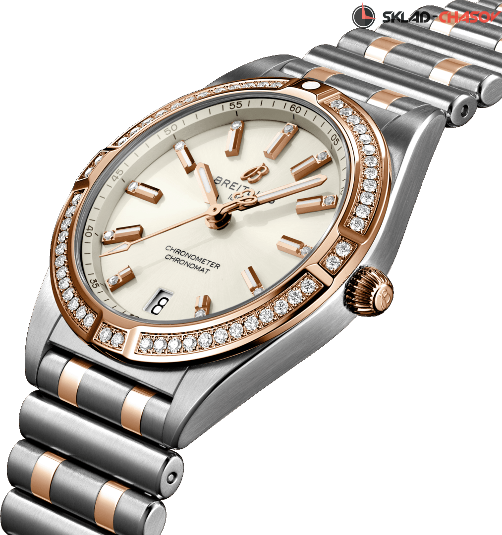 Выразительная и элегантная женская кварцевая модель. Секундная стрелка с логотипом на конце. Апертура даты в положении 6 часов. Хронометр C.O.S.C.
