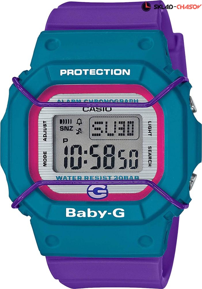 Лимитированная серия. Часы созданы в честь 25-ти летнего юбилея Baby-G. 12-ти и 24-х часовой формат времени. Электролюминесцентная подсветка освещает весь циферблат, после отпускания кнопки свечение продолжается еще некоторое время. Противоударный корпус защищает механизм от ударов и вибрации. Мировое время. Секундомер с точностью показаний 1/100 сек.и временем измерения 1 час. Таймер обратного отсчета от 1 мин. до 24 ч. Функция включения/отключения звука. 5 будильников, один с функцией Snooze, ежечасный сигнал. Задняя крышка украшена гравировкой числа юбилея. Подарочная упаковка. Вес 44 грамма. Гарантия 2 года.