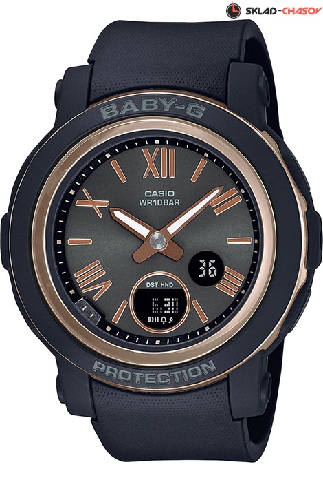 Противоударные кварцевые женские наручные часы Casio BGA-290-1A коллекции Baby-G с двойной индикацией времени. Калибр механизма — 5670. Функциональность данной модели: формат времени 12/24, мировое время в 48 городах (в 31 часовых поясах), вечный календарь до 2099 года, функция летнего времени (DST), 5 будильников, сигнал начала часа, секундомер с шагом 1/100 секунды и измерением до 59 минут 59 cек., таймер обратного отсчета (диапазон времени 24 часа), двойная диодная подсветка циферблата с возможность выбора времени свечения (1.5 или 3 секунды), функция выключения звука нажатия кнопок. Стрелки покрыты необритовым (Neobrite) люминесцентным напылением (светятся в темноте). Водонепроницаемость WR100 (10 атм).
