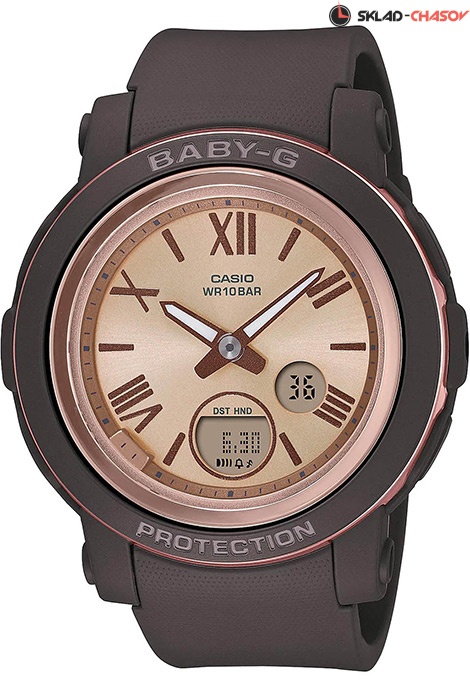 Противоударные кварцевые женские наручные часы Casio BGA-290-5A коллекции Baby-G с двойной индикацией времени. Калибр механизма — 5670. Функциональность данной модели: формат времени 12/24, мировое время в 48 городах (в 31 часовых поясах), вечный календарь до 2099 года, функция летнего времени (DST), 5 будильников, сигнал начала часа, секундомер с шагом 1/100 секунды и измерением до 59 минут 59 cек., таймер обратного отсчета (диапазон времени 24 часа), двойная диодная подсветка циферблата с возможность выбора времени свечения (1.5 или 3 секунды), функция выключения звука нажатия кнопок. Стрелки покрыты необритовым (Neobrite) люминесцентным напылением (светятся в темноте). Водонепроницаемость WR100 (10 атм).