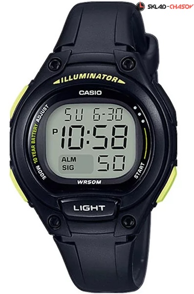 Электронные кварцевые женские наручные часы Casio LW-203-1B с цифровой индикацией времени. Калибр механизма — 3455. Функциональность данной модели: формат времени 12/24, вечный календарь до 2099 года, функция двойного времени, будильник, сигнал начала часа, секундомер с точностью 1/100 секунды и измерением до 23 часов 59 минут 59,99 cек. (режимы измерения: прошедшее время, промежуточное время, два финиша), диодная подсветка циферблата. Батарейка на 10 лет работы.