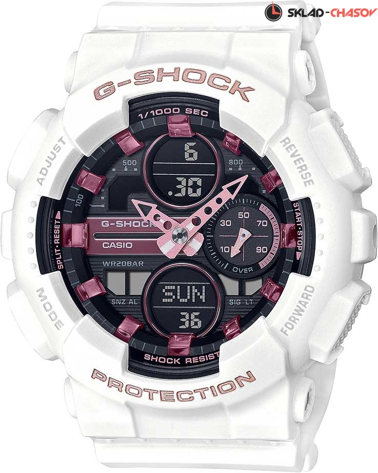 G-Shock S-Series. 12-ти и 24-х часовой формат времени. Секундомер с точностью показаний 1/1000 сек. и временем измерения 100 ч. Расчет скорости по выбранной дистанции. SPLIT-хронограф. Таймер обратного отсчета от 1 мин. до 24 часов с автоповтором. Противоударный корпус защищает механизм от ударов и вибрации. Циферблат подсвечивается светодиодом, функция автоподсветки включает ее при повороте циферблата к лицу. Мировое время – 48 городов (29 часовых поясов), всемирное координированное время (UTC). Функция включения/отключения летнего времени. Задняя крышка на 4-х винтах. Вес 56 грамм. Гарантия 2 года.