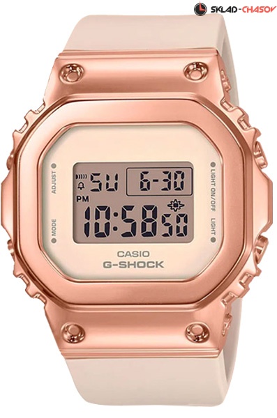 Противоударные кварцевые женские наручные часы Casio GM-S5600PG-4 коллекции G-Shock с цифровой индикацией времени. Калибр механизма — 3489. Функциональность данной модели: формат времени 12/24, вечный календарь до 2099 года, функция летнего времени (DST), многофункциональный будильник, сигнал начала часа, секундомер с точностью 1/100 секунды (для первых 60 минут), 1 секунда (после 60 минут) и измерением до 23 часов 59 минут 59,99 cек., таймер обратного отсчета (диапазон времени 24 часа), электролюминесцентная подсветка циферблата. На корпус нанесено стойкое PVD покрытие. Водонепроницаемость WR200 (20 атм).