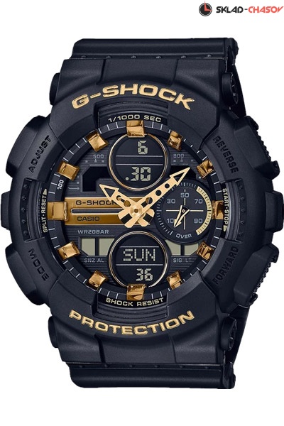 Противоударные кварцевые наручные часы Casio GMA-S140M-1A коллекции G-Shock цифровой+стрелочной индикацией времени. Калибр механизма — 5613. Функциональность данной модели: формат времени 12/24, вечный календарь до 2099 года, функция летнего времени (DST), мировое время 48 городов (29 часовых поясов), 5 независимых будильников, сигнал начала часа, секундомер с точностью 1/1000 секунды и измерением до 99 часов 59 минут 59,99 cек., функция расчета средней скорости движения, таймер обратного отсчета (диапазон времени 24 часа), диодная подсветка циферблата с функцией авто (включается при наклоне часов на 40°) и возможностью выбора продолжительности свечения (1.5 или 3 секунды) + необритовое (Neobrite) покрытие на стрелках для длительного послесвечения в темноте. Водонепроницаемость WR200 (20 атм).