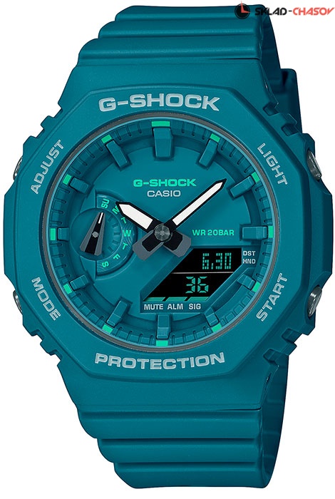 Противоударные женские кварцевые наручные часы Casio GMA-S2100GA-3A коллекции G-Shock с цифровой+стрелочной индикацией времени. Тонкий корпус для данной коллекции — 11.2 мм. Калибр механизма — 5611. Корпус усилен углеродным волокном, изготовленным по технологии Carbon Core Guard. Функциональность данной модели: формат времени 12/24, вечный календарь до 2099 года, функция летнего времени (DST), мировое время в 48 городах (31 часовой пояс), 5 независимых будильников, сигнал начала часа, секундомер с точностью 1/100 секунды и измерением до 23 часов 59 минут 59 cек., таймер обратного отсчета (диапазон времени 24 часа), двойная диодная подсветка циферблата с возможностью выбора времени свечения (1.5 или 3 секунды) + необритовое (Neobrite) покрытие на стрелках для длительного послесвечения в темноте, функция выключения звука нажатия кнопок (Mute), функция смещения стрелок для удобного просмотра информации на цифровом экране. Водонепроницаемость WR200 (20 атм).