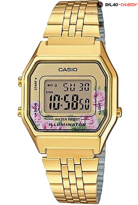 Электронные кварцевые женские наручные часы Casio Vintage LA680WGA-4C с цифровой индикацией времени. Калибр механизма — 3284. Функциональность данной модели: формат времени 12/24, автоматический календарь, будильник, сигнал начала часа, секундомер с точностью 1/100 секунды и измерением до 59 минут 59,99 cек. Диодная подсветка циферблата. Стальной браслет. На браслет нанесено стойкое PVD покрытие. Водонепроницаемость WR (3 атм).