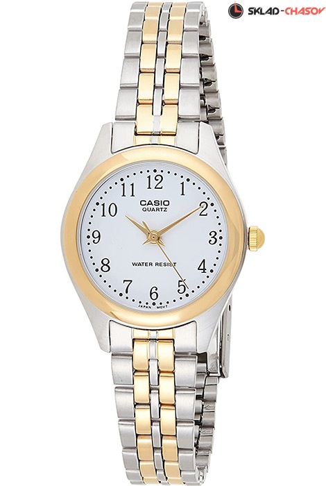 Женские кварцевые наручные часы Casio LTP-1129G-7B. Калибр механизма — 1330. Стальной браслет. На корпус и браслет частично нанесено стойкое покрытие. Водонепроницаемость WR (3 атм).