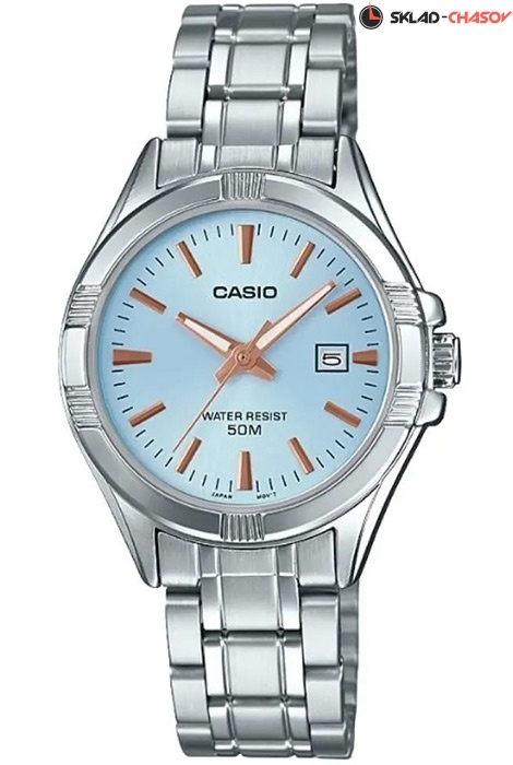 Женские кварцевые наручные часы Casio LTP-1308D-2A. Калибр механизма — 3363. Стрелки и метки покрыты люминесцентным напылением (светятся в темноте). На циферблате присутствует индикация текущей даты. Стальной браслет. Водонепроницаемость WR50 (5 атм).