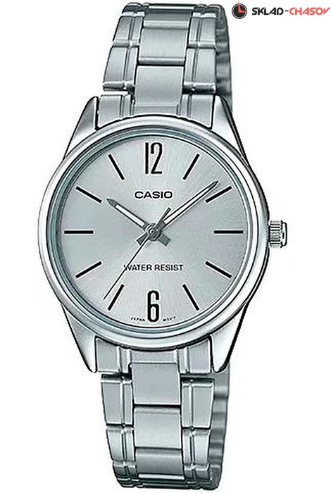 Женские кварцевые наручные часы Casio LTP-V005D-7B. Калибр механизма — 5361. Стрелки покрыты люминесцентным напылением (светятся в темноте). Стальной браслет. Водонепроницаемость WR (3 атм).
