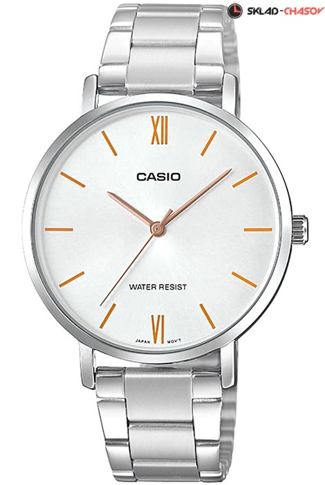 Женские кварцевые наручные часы Casio LTP-VT01D-7B. Калибр механизма — 1330. Стальной браслет. Водонепроницаемость WR (3 атм).