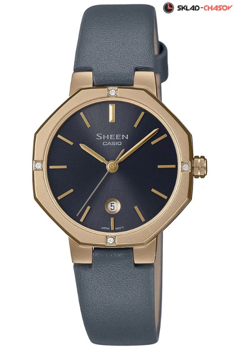 Женские кварцевые наручные часы Casio SHE-4543GL-8A коллекции Sheen. Калибр механизма — 2744. Тонкий корпус часов - всего5.9 мм. На циферблате присутствует индикация текущей даты. Корпус украшен камнями Swarovski. На корпус часов нанесено стойкое PVD покрытие. Установлено сапфировое стекло устойчивое к царапинам. Кожаный ремешок. Водонепроницаемость WR50 (5 атм).