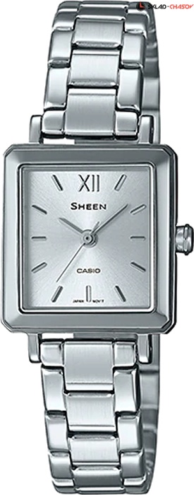 Женские наручные часы Casio Sheen с прямоугольным корпусом. Циферблат закрывает устойчивое к потертостям и царапинам сапфировое стекло с антибликовым покрытием. Браслет с тройной раскладывающейся застежкой. Вес часов 54 грамма. Гарантия 2 года.