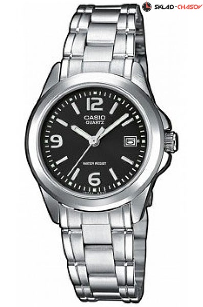 Женские кварцевые наручные часы Casio LTP-1259PD-1A. Калибр механизма — 3363. Стрелки и метки покрыты люминесцентным напылением (светятся в темноте).