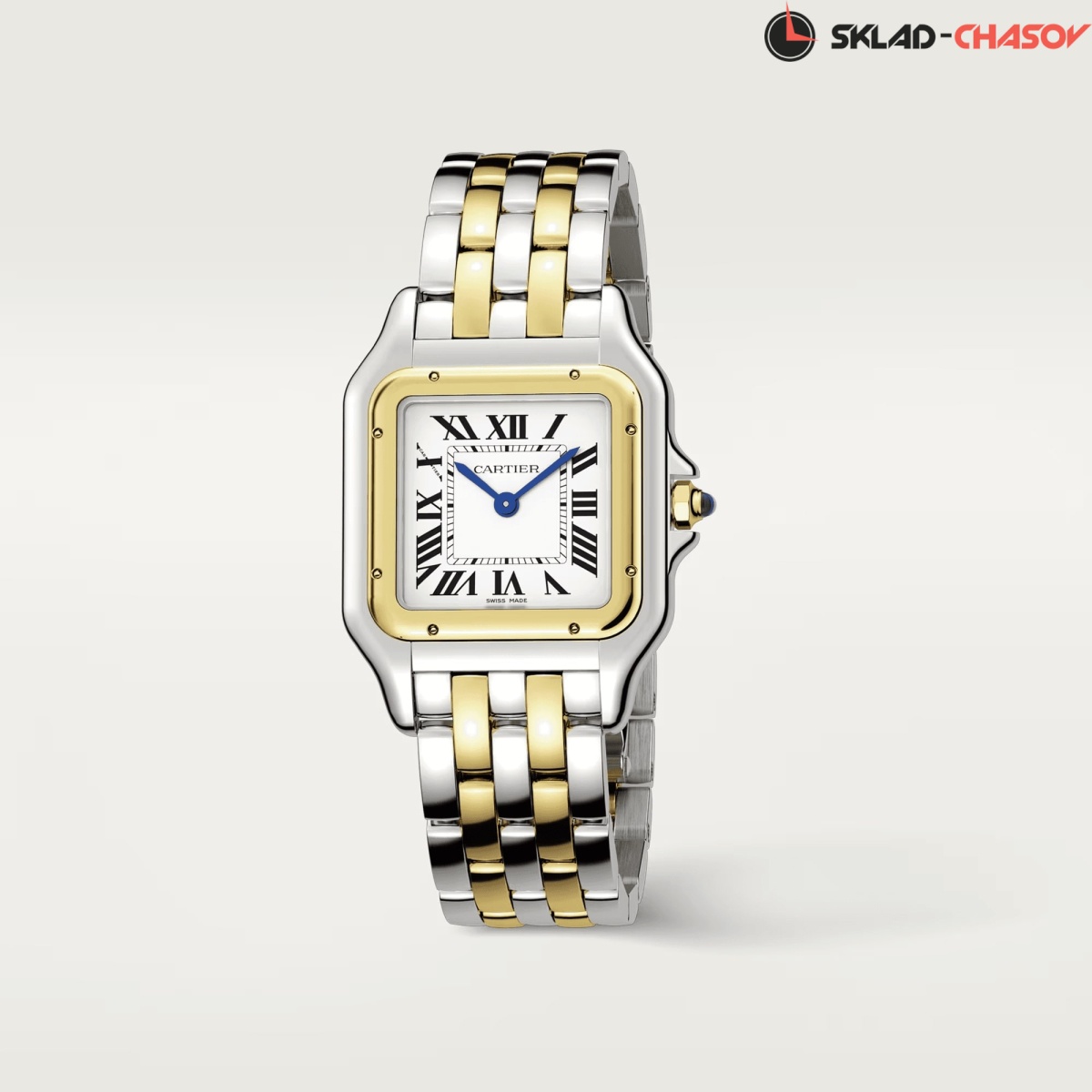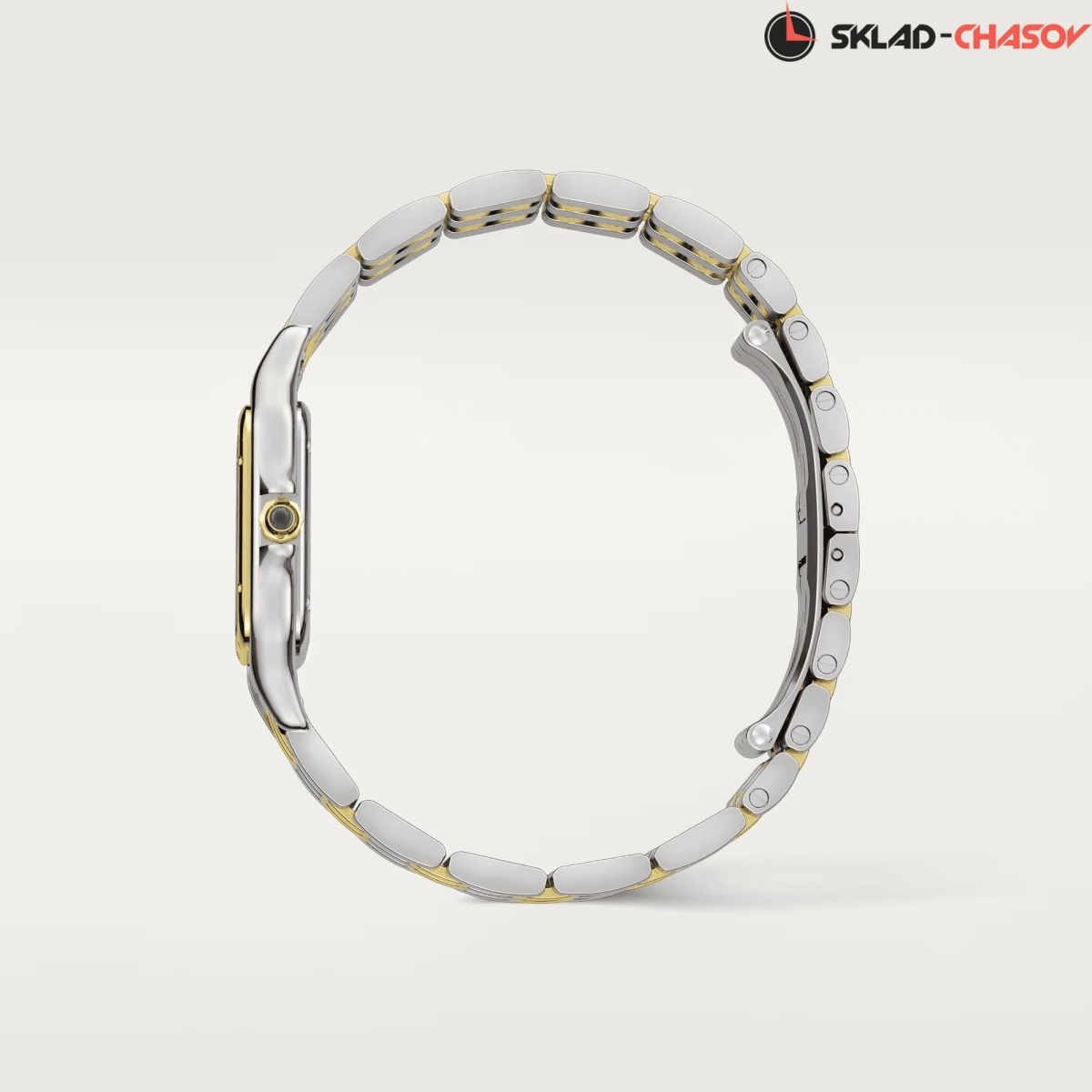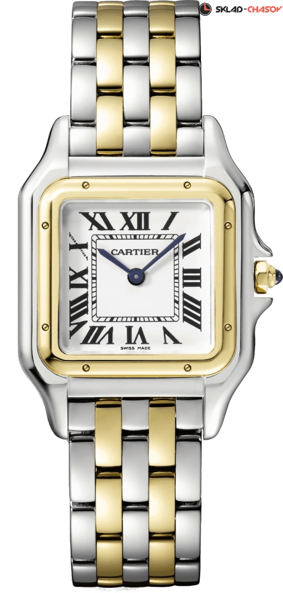 Модель Cartier W2PN0013 с литым браслетом из нержавеющей стали и желтого золота 18K, браслетная застежка “бабочка”.