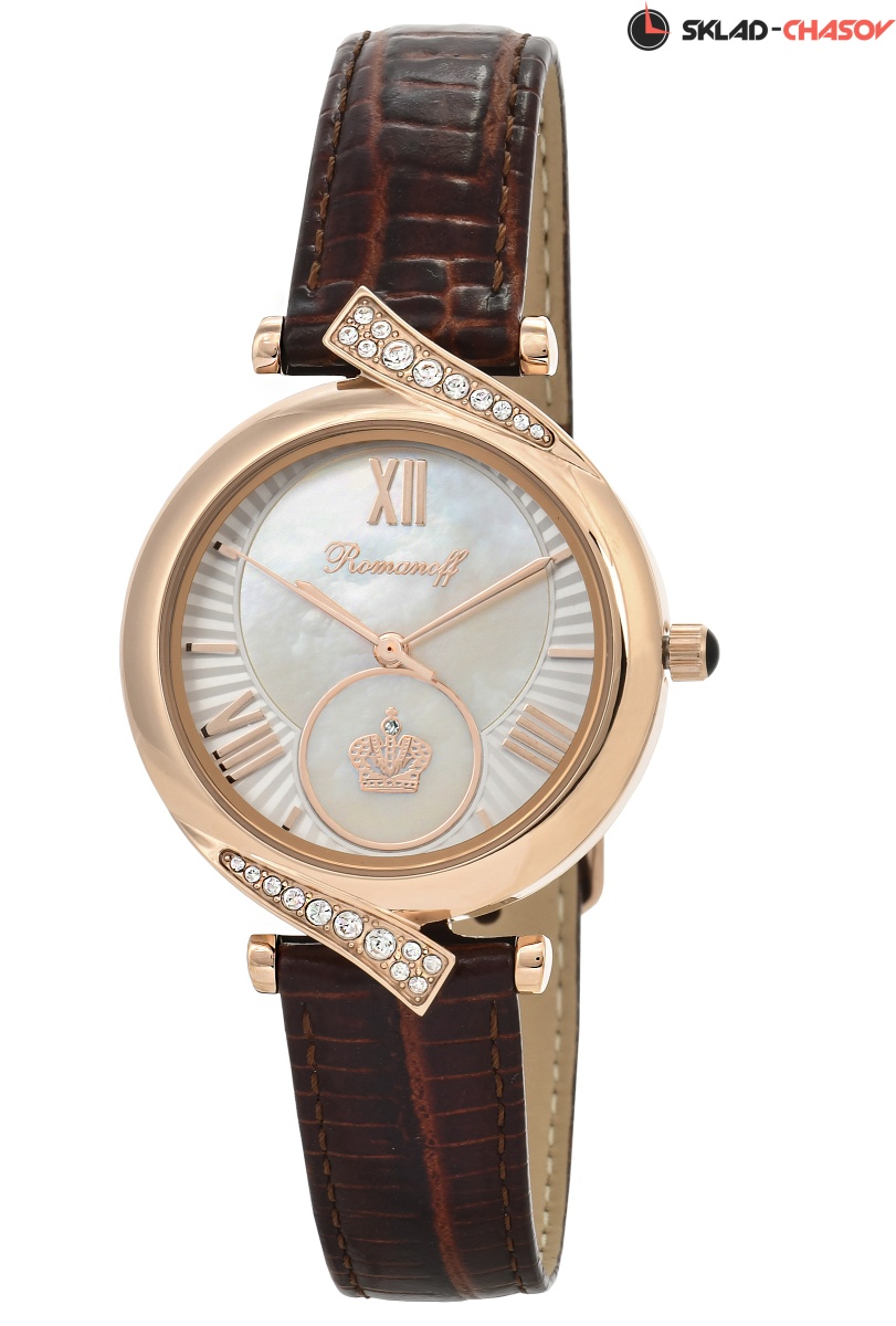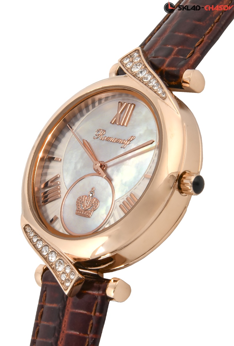 Циферблат: натуральный морской перламутр. Золотые римские цифры и индексы, золотые стрелки. Объемная золотая императорская корона, бриллиант Swarovski в короне.