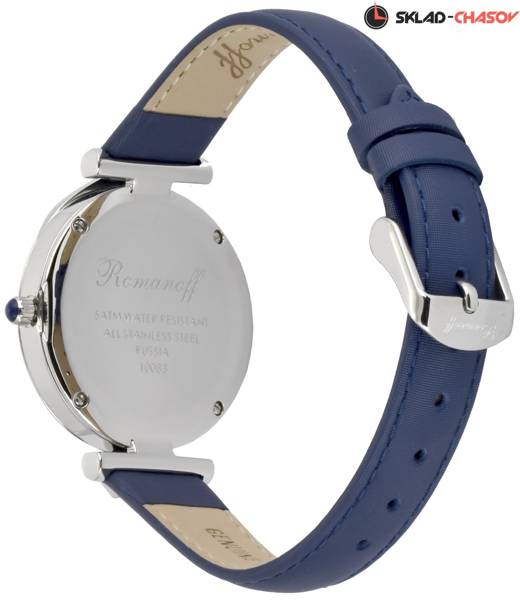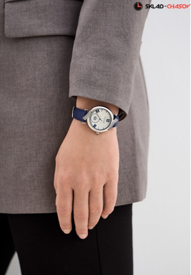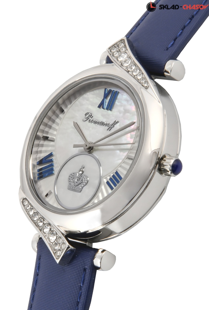 Циферблат: натуральный морской перламутр. Синенные римские цифры, серебряные стрелки. Объемная серебряная императорская корона, бриллиант Swarovski в короне.