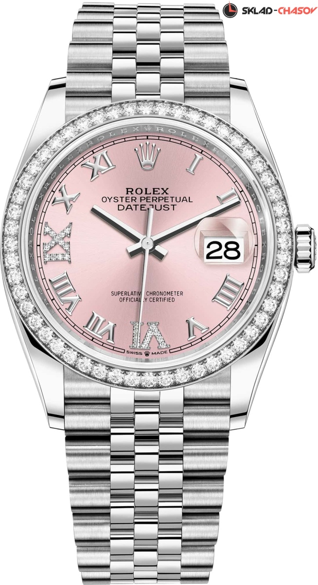 Модель 126284RBR-0023 на браслете со звеньями в 5 рядов из материала Oystersteel - высокосортная сталь марки 904L. Гибкий и удобный браслет Jubilee был разработан специально для модели Oyster Perpetual Datejust, созданной в 1945 году к 40-летнему юбилею Rolex. Раскладывающаяся застежка с запатентованной системой быстрого удлинения Easylink. Она скрыта под застежкой и позволяет без дополнительных инструментов регулировать длину браслета примерно на 5 мм за счет дополнительного звена, которое легко складывается и раскладывается.