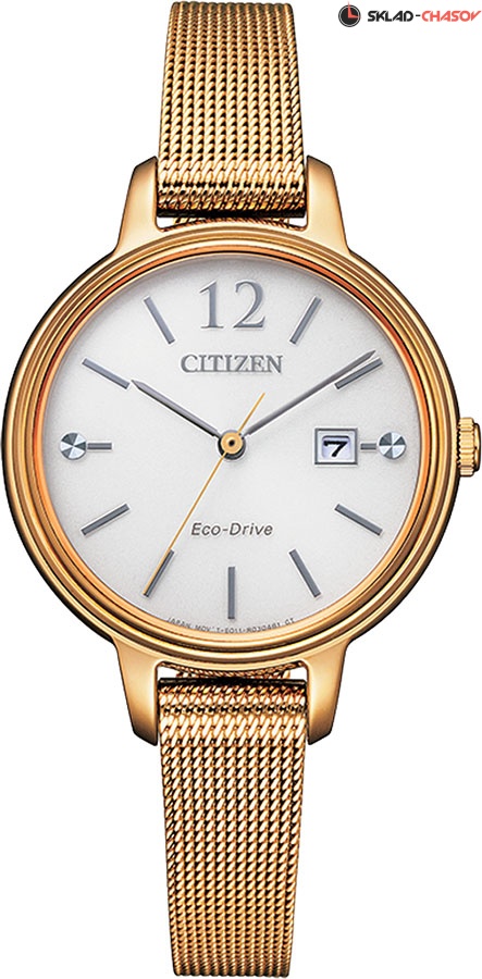 Стильные женские наручные часы Citizen на изящном стальном браслете миланского плетения. Система Eco-Drive, не требующая замены батарейки. Питание от солнечной энергии, запас энергии на 180 дней. Функция индикации заряда (EOL) и предотвращения перезарядки. Вес часов 39 грамм. Гарантия 1 год.